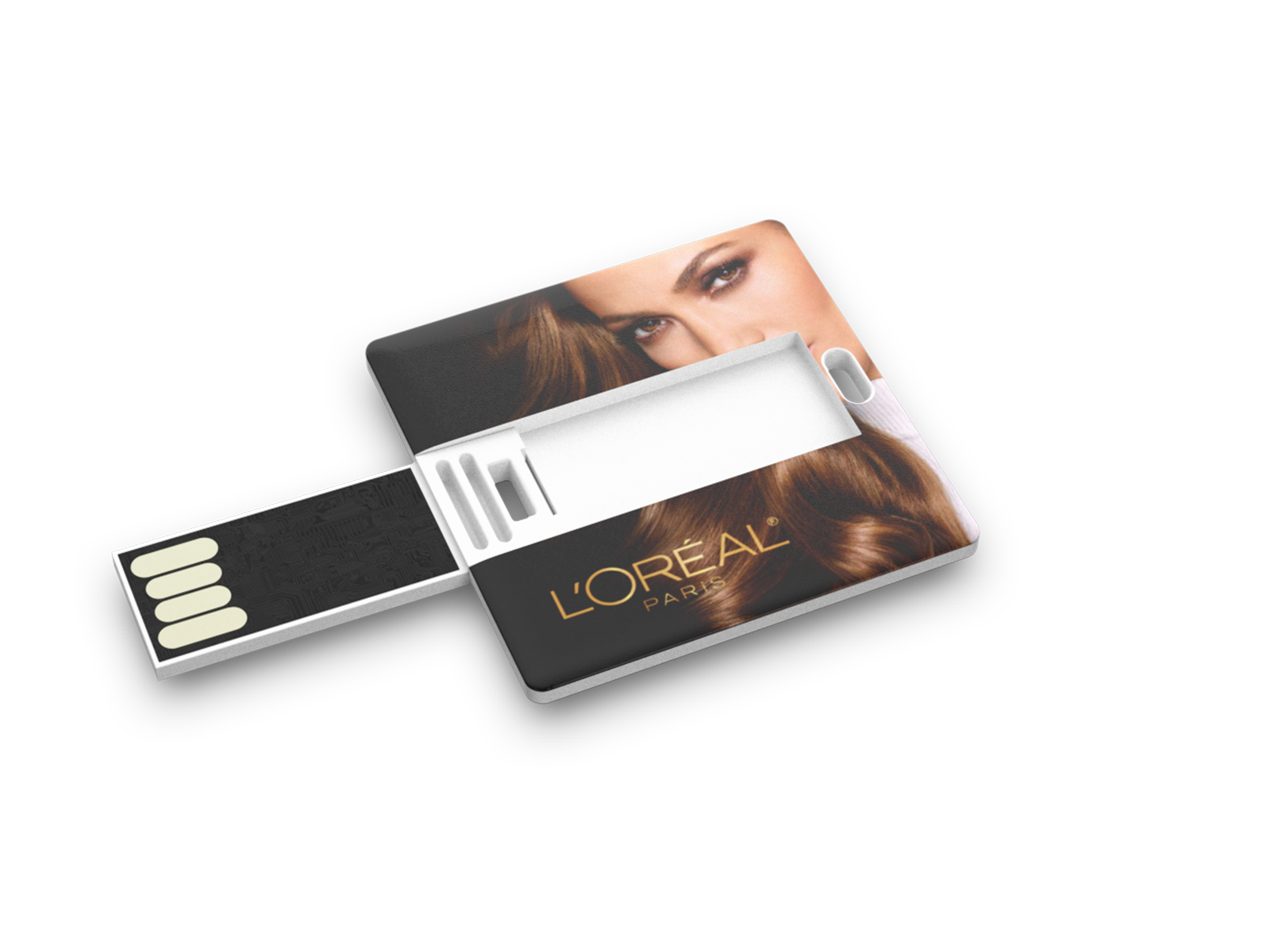 Go square to create lasting impact for your business with this eye-catching credit card USB. We can print edge-to-edge graphics directly on the ultra slim plastic card surface in full colour on both sides to give your brand real stand-out quality. Equally practical, the USB connector simply slides in and out of the square card effortlessly.