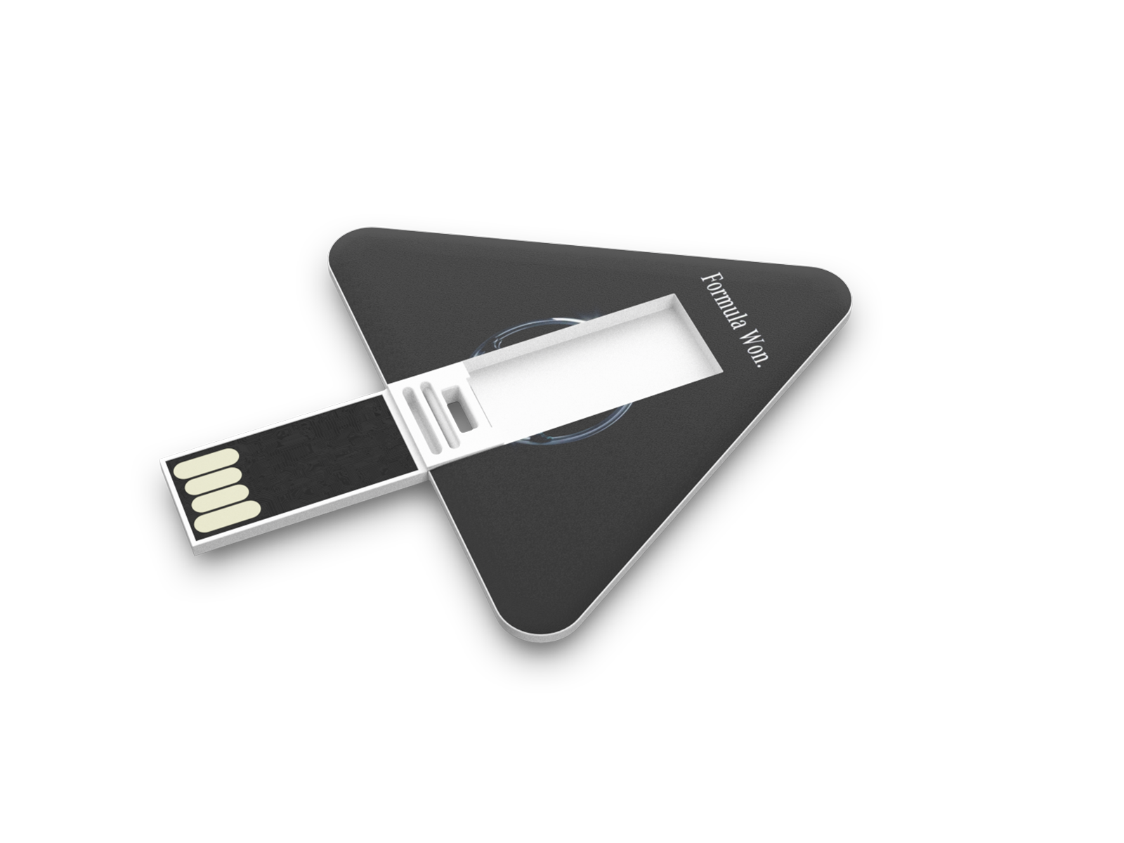 USB cards come in a number of shapes and sizes. Our triangular card USB offers a further alternative that can suit a particular style of business, logo or message. Full colour printing, up to the edge and on both sides of this sturdy plastic product, comes as standard. Pull out the USB and this model turns into an arrow, a tree or even a plane!